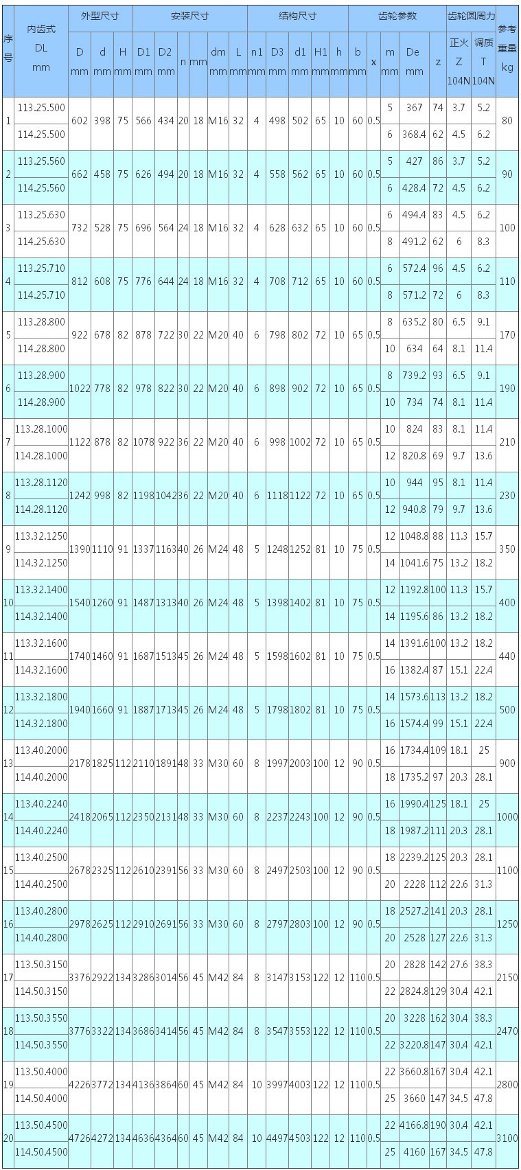 3、表內齒輪圓周力為最大圓周力,額定圓周力取其1/2。